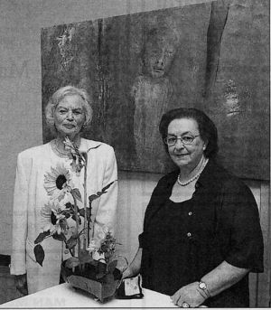 Darmstädter Echo, 22. Mai 2002: Bilder und Blumen in ErzhausenAusstellung - Kunst- und Kulturinitiative in Erzhausen präsentiert die Ikebanameisterin Rita Richter und die Malerin Lilo Sehnert im Bürgerhaus ERZHAUSEN. Ikebanameisterin Rita Richter (70) und - knapp zehn Jahre älter - die Malerin Lilo Sehnert sind im Grunde ihres Herzens jung geblieben, weil sie sich immer neue Ziele setzen. Zwei kreativ denkende Menschen, die sich gesucht und gefunden haben. Vor einem Jahr wurde im Darmstädter Maritim-Hotel eine Gemäldeausstellung Lilo Sehnerts eröffnet. Unter den Gästen befanden sich einige Mitglieder der Kunst- und Kulturinitiative („KuK") Erzhausen. So auch Rita Richter, die begeistert war. Kurz darauf kam es zum Gedankenaustausch zwischen den Beiden. Die blonde Malerin erzählte, daß ihre Liebe dem Porträt gehöre: „Mit vielen Möglichkeiten, Gefühle auszudrücken." Damit traf sie bei ihrer Gesprächspartnerin ins Schwarze, denn auch die japanische Lehrmethode des Blumenarrangements vermittelt tiefe Einsichten in Werden und Vergehen der Natur. „Ikebana erlaubt einen Blick auf die eigene Person", so die Meisterin der Kaden-Ryu-Schule. Diese Erkenntnis gab den entscheidenden Impuls für das Vorhaben, zusammen mit „KuK" im Bürgerhaus eine mehrtägige Ausstellung mit Blumen und Bildern zu präsentieren. An Pfingsten schafften sie das Kunststück, den sonst eher nüchtern-kühlen Sitzungsraum der Gemeindevertretung in eine blühende Galerie zu verwandeln. Titel dieser Ausstellung: „Lichtblicke in Zeit und Ewigkeit". Einführende Worte sprach Diplomdesignerin Doris Zeidlewitz aus Riedstadt-Crumstadt, die Lehrmeisterin Lilo Sehnerts. Fünf Musiker des „Kleinen Darmstädter Orchesters" spielten Teile eines sinfonischen Werks. Zu sehen bekamen die Besucher, umgeben von einer geheimnisvollen ostasiatischen Aura, eine ganze Menge: 15 Sehnert-Bilder, denen man die Freude am Experimentieren ansah, etwa beim Spiel mit den Farben. Darauf abgestimmt, steckte die Schönheit der Ikebanakunst überwiegend in Vasen aus dem Land der aufgehenden Sonne: Sonnenblumen, dunkelrote Rosen, lila Tulpen, helle Hortensien, weiße Garteniris oder rosa Rhododendren. wi